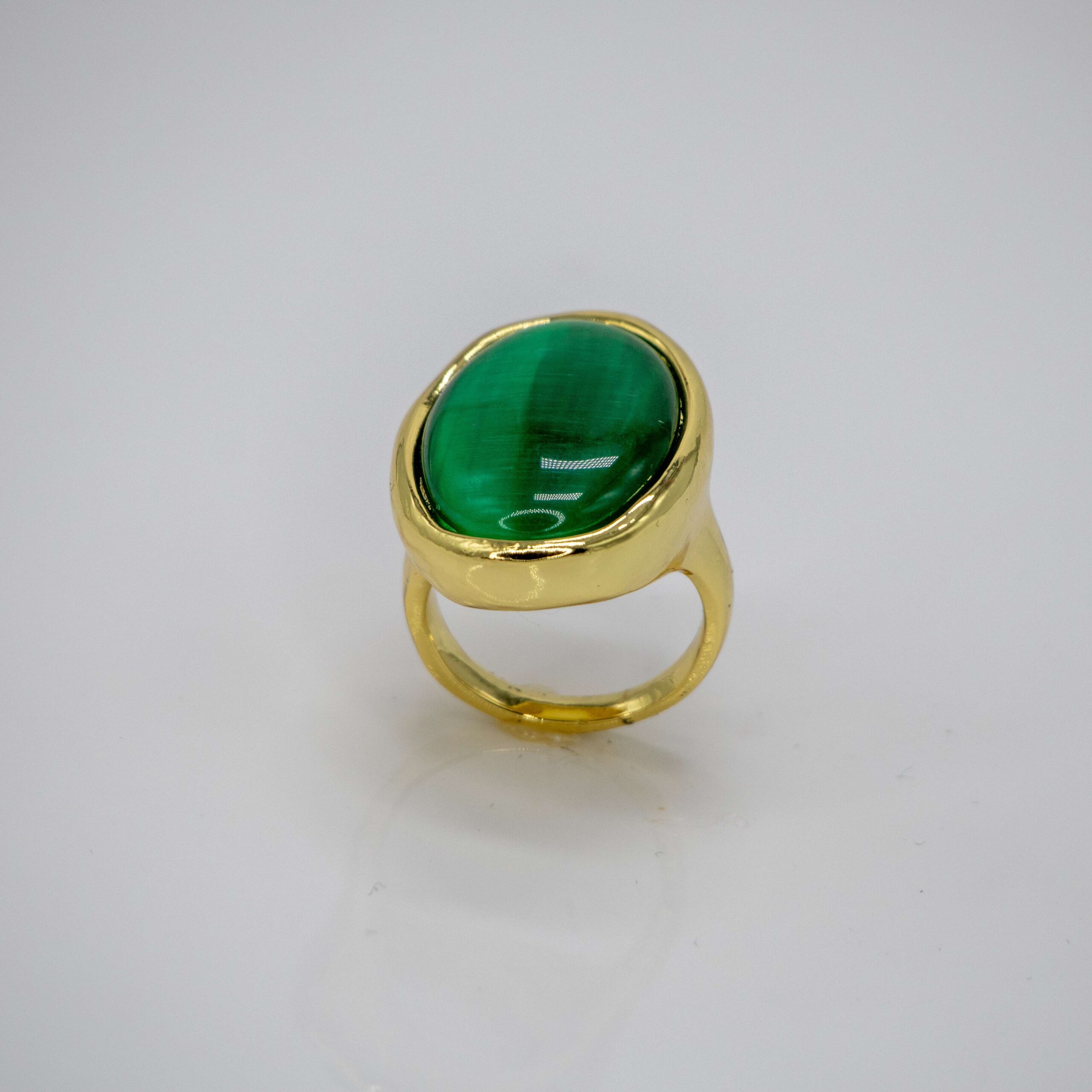 Gold plated ring with large green stone