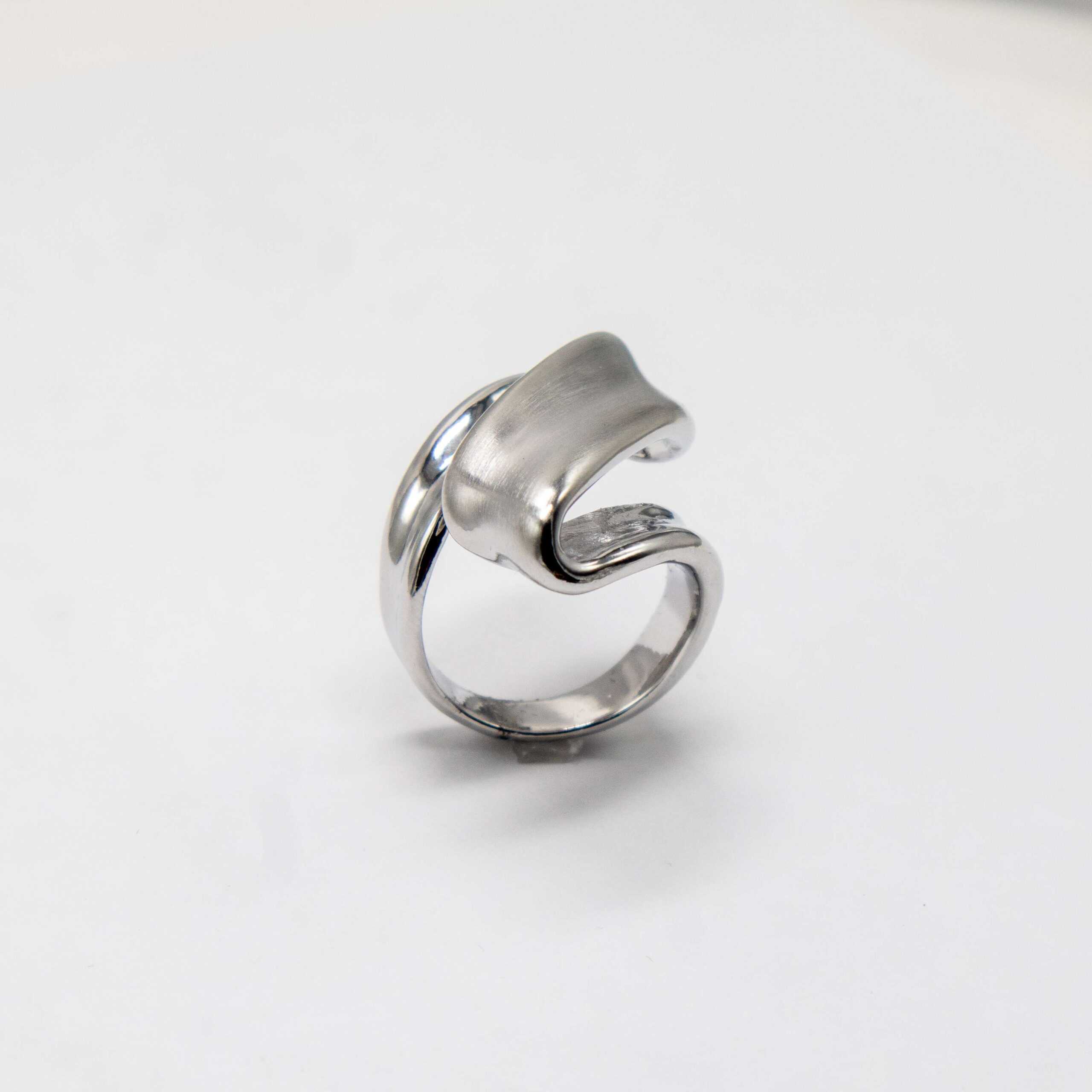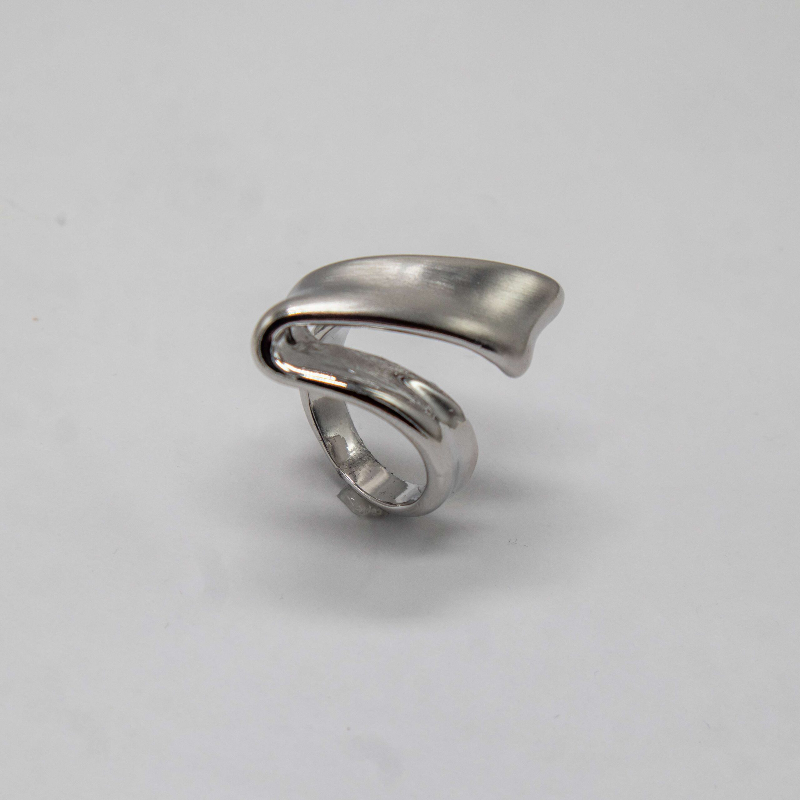 Piega is a sculptural silver ring that flows like a fold in fabric and,shaped by motions. It is an everyday ring.